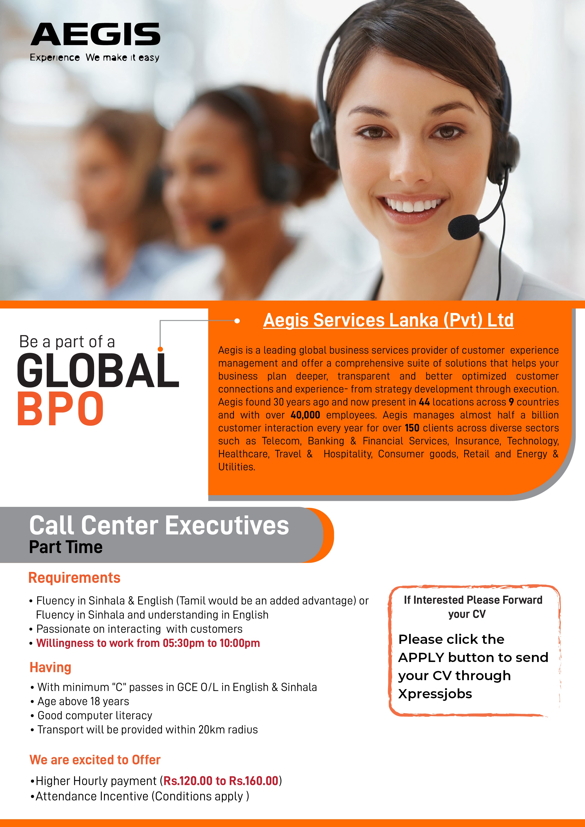 Call Center Executives Part Time Wattala Aegis Services Lanka Xpressjobs