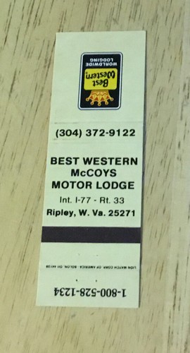 Matchbook Best Western Ephemera Mccoys Motor Lodge Ripley West Virginia Motel Wv Ebay